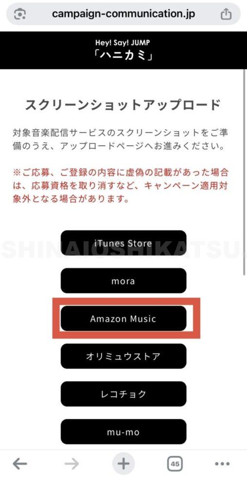 応募フォームで、自分が購入した音楽配信サービスを選択します。
