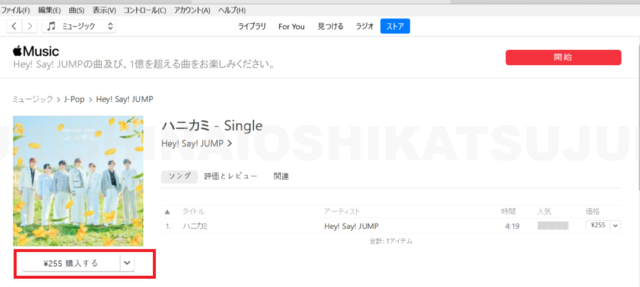 3. 楽曲ページで価格ボタン(255円)をクリック