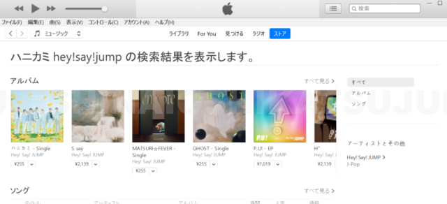 1. iTunes Store画面右上の検索ボックスに「ハニカミ Hey! Say! JUMP」と入力